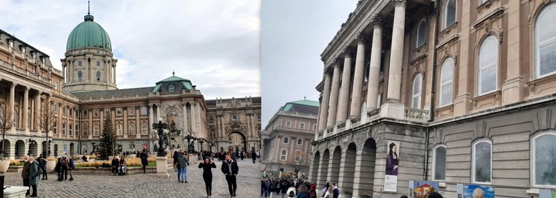 No a poté už jsme se pomaličku přesunuli na samotné sídlo někdejších uherských králů – Budínský hrad. Dějiny tohoto palácového komplexu jsou fascinujícím příběhem, a tak jsme si o něm něco přečetli, pokochali se širokou plejádou architektonických stylů, udělali pár fotek, a to i s výhledem na řeku a Pešť a odebrali se do Královského paláce.