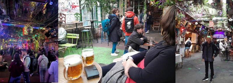 Po sestoupení z hradního návrší k Alžbětinu mostu (pojmenovaný podle rakouské císařovny Sissi) a návratu přes něj zpět do Pešti jsme si již jen užívali procházku nočním městem. Všude to poměrně hodně žilo, takže jsme vyrazili ještě do židovské čtvrti navštívit jeden z takzvaných "ruinových pubů" – Szimpla Kert. Fenomén těchto - pro tuto část města tak typických – alternativních podniků vznikl před pár lety, jako kreativní působ využití opuštěných budov, kde v jejich prostorách vznikl labyrint extravagantních zákoutí, barů, restaurací, galerií a tržišť s neformální atmosférou. Za mě naprostá pecka s příchutí free života, i když mnohem víc jsme si místo užili při opětovné denní návštěvě, kdy už to nebyla tak masová záležitost a všechno bylo mnohem víc na pohodu. Prostě uvolněná hippie spokojenost až blaženost, vyvolávající málem touhu si potichoučku zachrochtat …