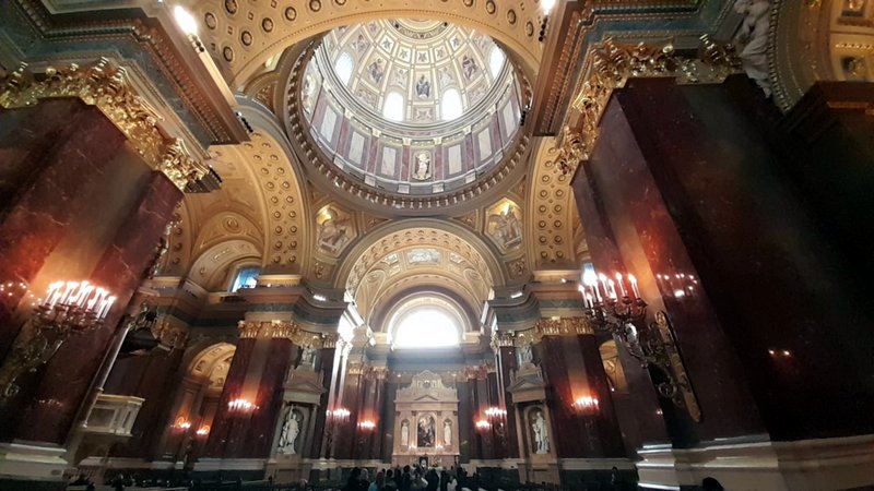 Potom již ale nastal čas pohlédnout zblízka do oka prvnímu uherskému králi Štěpánovi I., což bylo spojeno s prohlídkou jeho monumentální baziliky. Její výška je 96 metrů - stejně jako kopule Parlamentu - což prý symbolicky odkazuje na již zmíněný rok 896 (datum příchodu Maďarů do Uher) a činí z ní zároveň třetí nejvyšší budovu Maďarska. Samotný interiér baziliky je pak svým způsobem pozoruhodnou uměleckou galerií, díky čemuž jsme se zde zdrželi poměrně dlouho.