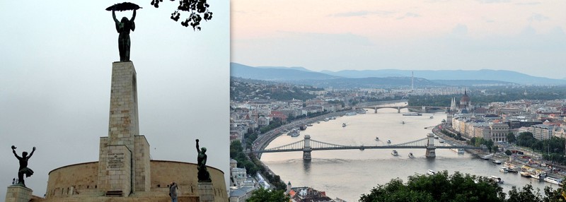 Nicméně jsme chtěli toho dne shlédnout podstatně víc, a tak jsme se nechali ještě svézt tramvají na pravý břeh, ke Gellertově hoře a po svých vystoupali na vrchol známý jako Citadela se sochou Svobody. Ta je vyobrazená jako bohyně Niké a připomíná ty, kteří zemřeli za svobodu Maďarska, což je citlivé téma, tudíž památník prošel v minulosti změnami odrážejícími měnící se politické klima. I v současnosti je z důvodu oprav oplocen se zákazem vstupu, což jsme ale zjistili až na vrcholu. Přesto je cestou a i přímo pod sochou mnoho parádních vyhlídek, ze kterých se město rozdělené řekou zdá být dvěma polovinami jednoho velkého jablka.