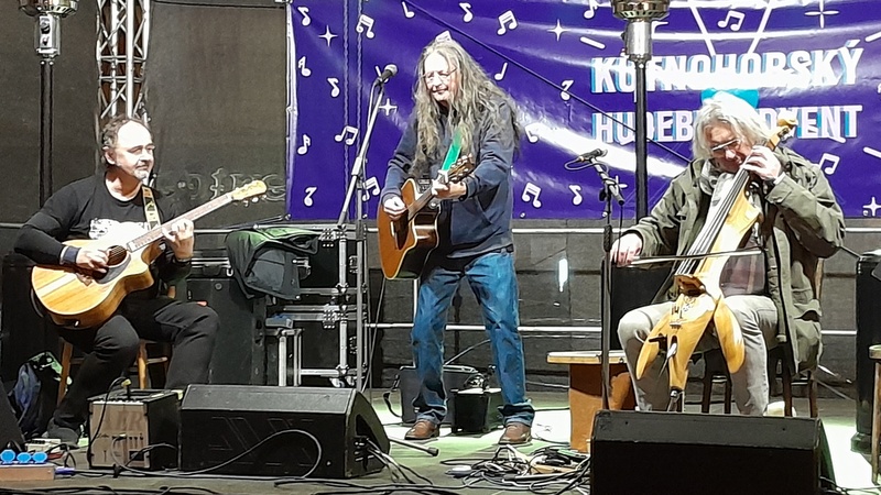 Kutnohorské náměstí opanují v tomto období adventní trhy, jejichž doprovodný hudební program nabídl mimo jiné i vystoupení uskupení Ivan Hlas Trio. Že bude koncert laděn spíše komorněji, napovídal nejen předvánoční čas ale i nástrojové složení pánů muzikantů - Ivan Hlas (kytara), Norbi Kovacs (kytara) a Olin Nejezchleba (violoncello). Na spoře, leč účelně nasvíceném pódiu úvodem zazněla Dylanova/Hutkova "Slunečnice", která všechny naladila na pohodovou notu, nicméně hudebně barevný koncert osciloval mezi lyrickými písněmi a těmi rychlejšími, které vycházely z podstaty blues. Přece jen se nezapřely Hlasovy hanspaulské kořeny. Samostatnou kapitolou pak byl výkon jeho spoluhráčů, kdy Olin Nejezchleba svou hrou na violoncello nenapodobitelně podkresloval poetičnost Hlasových písniček, zatímco Norbi Kovacs vysekával jedno ekvilibristické sólo za druhým. Nicméně největší síla vystoupení byla především v lyrických skladbách a Hlasově nezaměnitelném projevu, který svou civilností dokresloval předvánoční atmosféru náměstí. Sice se to nezdálo, ale recitál, během kterého jsme s Martinou stačili vypít každý tři svařáky, utekl jako voda a definitivní tečku za ním udělal šakalí rokec "Jednou mi fotr povídá". Myslím, že většina z těch, kteří ten večer opouštěla rozzářené náměstí, byla spokojena a užila si příjemný večer plný souznění a pohody. Alespoň já tedy ano.