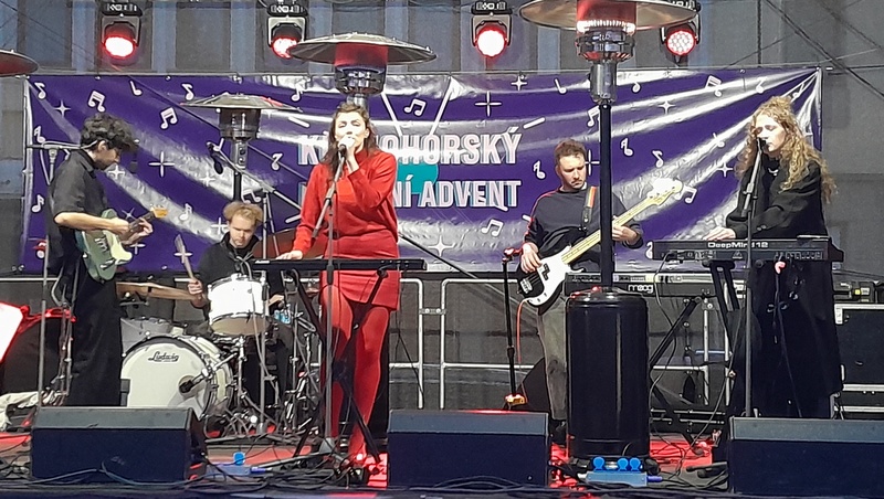 Sobotně adventní atmosféru na Palackého náměstí s tradiční vůní svařáků, trdelníků, perníčků, ale také langošů a klobás prolnuly tentokrát i tóny písní skupiny Teige v rámci pokračování Kutnohorského hudebního adventu. No a toto vystoupení byla pro nás nejen hudební událost, ale i srdcová záležitost, protože jejími zakládajícími členy jsou Adam s Veronikou - tedy můj syn se svou ženou. A protože bych díky tomu byl zřejmě zcela neobjektivní, tak se zdržím jakéhokoli hodnotícího názoru a jen napíšu, že mě moc těší, jak jejich nedávno vydaná deska "Květiny nonstop" sklízí pochvaly odborné hudební kritiky a získala i nominaci na cenu v kategorii alternativního popu.